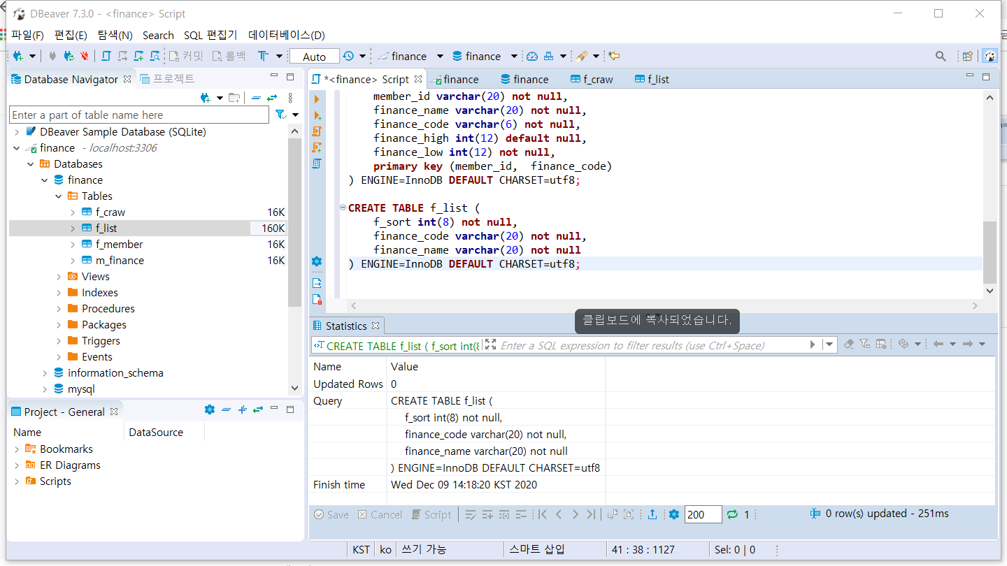 다음과 같이 f_list 테이블을 생성하였다.