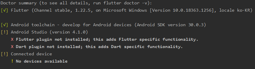 flutter doctor의 실행하였을 때 밑에 와 같이 오류가 발생할 때가 있다.