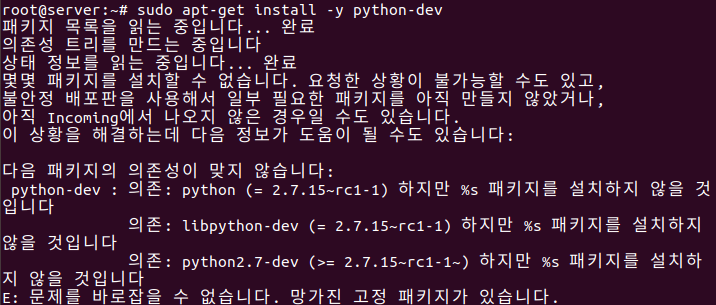 [리눅스] ubuntu 18.04 python-dev 설치 의존성 오류 해결